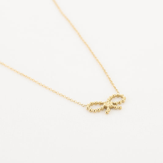 Small Bow Charm Necklace - gold