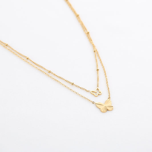 Double Butterfly Necklace - gold